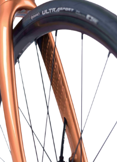 Lapierre Pulsium SAT 5.0 105 is our premium carbon endurance road bike - perfect for exploring the stunning climbs and coastal roads of Costa Blanca. The unique copper–black frame design you see in the photos features Lapierre’s SAT (Shock Absorption Technology), which filters out road vibrations and keeps you comfortable on long days in the saddle.