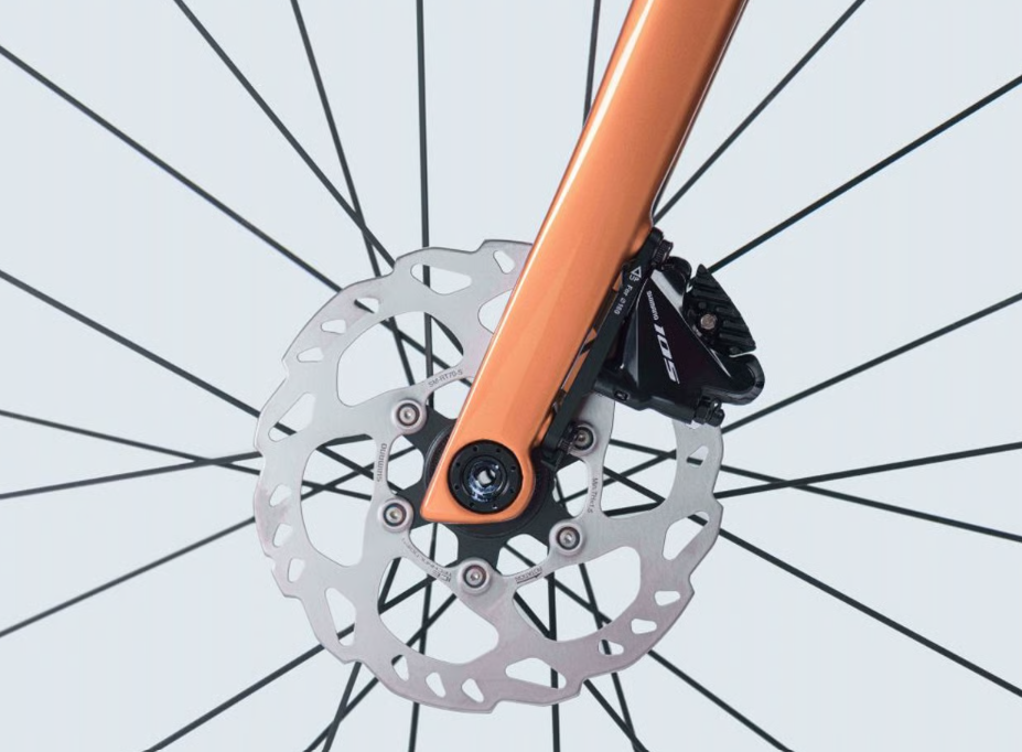 Hydraulic Shimano 105 disc brakes provide powerful, reliable stopping power on every corner.